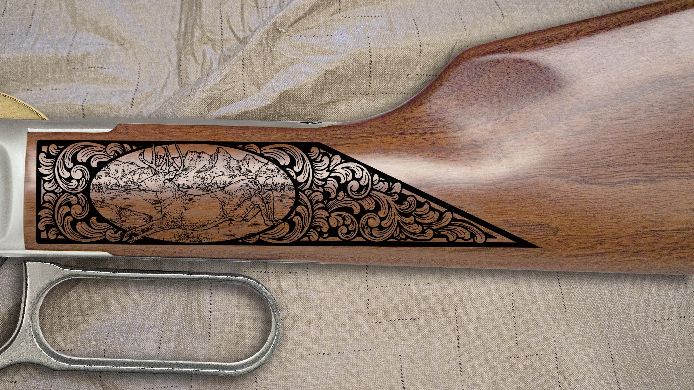 Built on a fully functional Henry .30-30 lever action, this rifle features a high-grade Jewelers-Nickel finish with 24 Karat Gold inlay. This ornately engraved rifle depicts scenes of the majestic whitetail deer in vivid detail on both the receiver and walnut stock. Limited to only 50 numbered rifles, this edition is the perfect gift for the avid collector or celebrated sportsman.